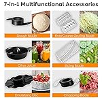 【All-in-One 7 Multifunction Processor】7 multifunctional accessories are included for chopping, kneading, slicing, fine/coarse grating, emulsifying & juicing! This kitchen food processor is cost-effective enough to work through almost all ingredients quickly and evenly. You can use it to prepare any meal.