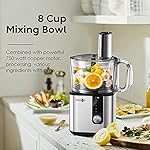 Specification: Food Processor- MAGICCOS 7-in-1 Food Processor Vegetable Chopper, 750W, 5 Variable Speeds & Pulse for Chopping, Kneading, Slicing, Fine/Coarse Grating, Emulsifying & Juicing, 8 Cup Capacity