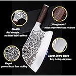 ✨【Outstanding Material & Stylish Pattern】 Utilizing our specially formulated High Carbon 9CrMoV18 Stainless Steel your meat cleaver is constructed to be very resistant to corrosion and rust. Unique hammered texture on the blade makes it beautiful to behold and corrosion-resistant while it also helps to prevent foods from sticking.?