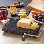 Serving a delicious cheese platter at your next gathering will add a touch of class while savoring all of your guests’ taste buds at the same time. This attractive Black Marble Cheese Slicer is perfect for your next occasion! Slice both hard and soft cheeses quickly and cleanly with the durable stainless steel wire, while the marble base keeps the cheese at a nice, cool temperature. Rubber feet reduce movement and slips for ideal and easy slicing. The cheese slicer comes with two replacement wires to ensure long-lasting use. Hand washing recommended to keep your slicer looking brand new. Create uniform slices every time and be the best host on the block with this marble cheese slicer!