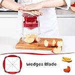 ✔ CONVENIENT FOR ALL: Cut stunning long French fries, you can even dice them. It is also great for zucchinis, cucumbers, other vegetables and fruits into perfectly shaped sticks in seconds, perfect for dips. Use the Wedges blade to cut fruits into 8 equal wedges. You can also cut sweet potatoes, we recommend microwaving them for 1 minute first to soften, then let them cool before handling.