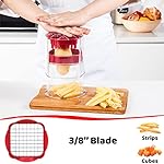 Specification: French Fry Cutter, Apple Cutter, Onion Chopper, Vegetable Slicer, Super Sharp Blades, Easy to Clean, Dishwasher Safe, Perfect for Air Fryer, With Container
