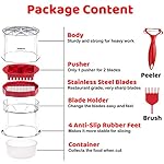 ✔ EASY CLEANING & DISHWASHER SAFE: Its simple and efficient design makes it very easy to clean. The Slicer is made of food grade ABS material, non-toxic, BPA free and dishwasher safe. It can be easily disassembled into few parts for effortless deep cleaning.