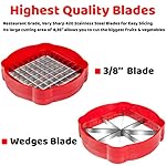 ✔ SURGICAL GRADE BLADES: High quality restaurant-grade 420 stainless steel engineered for years of use. Comes with two kind of blades to choose from: 1 Fry Blade 3/8’’ and 1 Wedges Blade. It slices potatoes, apples, oranges, carrots, onions and more with little effort.