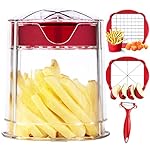 French Fry Cutter, Apple Cutter, Onion Chopper, Vegetable Slicer, Super Sharp Blades, Easy to Clean, Dishwasher Safe, Perfect for Air Fryer, With Container