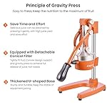 ?? HIGH-QUALITY HEALTHY LIFE-The food contact part has passed the inspection of the US FDA.The pressing part uses a stainless steel funnel filter to improve and enlarge the aluminum alloy gland.The rubber feet at the bottom are strongly adsorbed to ensure that you can efficiently and safely perform the pressing work.