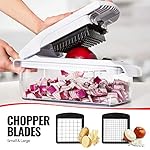 Quality materials and easy store – our multifunctional chopper dicer comes with a space-saving blade organizer, perfect for saving space in the kitchen. The abs plastic is nontoxic and bpa free guaranteeing healthy meals for your family.