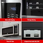 2 SPEEDS EXHAUST FAN & 30-SECOND EXPRESS COOKING Exhaust fan with 2 speeds removes smoke and odors from your kitchen quickly and efficiently. Microwave can 30-seconds cook food.