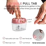 ✔ 【 Easy to Use 】 Simply place ingredients in the container, twist and lock the lid, and pull the cord to spin the chopping blades. (Note: Please cut the ingredients into small pieces before chopping them)
