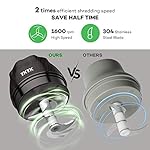 【Time Saver with Upgraded Motor】The electric garlic mincer has been the 2nd version with newly upgraded motor. Equipped with 1600rpm/s rotating and 3 sharp 304 stainless steel blades, the chopper can finish cutting within 3s-10s for different food (2 sets of blades included). Just one button to start, no need keep pressing it , A great time saver !