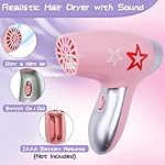 ✂️ [Realistic Blow Dryer ] This pretend girls hair kit simulates a real scene. This battery operated blow dryer can make noise and blow air just like a real dryer. ( Note: 2 AAA batteries are required. Not Included). The play tool set is made of premium ABS plastic, safe and light. Your kids can easily hold this Hair Stylist Toy.