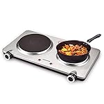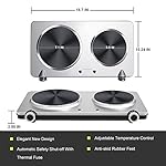 [Superior Quality] This electric double burner is made of stainless steel body and cast-iron heating element, which is durable and easy to clean. The anti-skid rubber feet ensures the stability at the bottom, preventing the electric burner from moving during cooking.It is ideal for office use, camping, parties, boats, RVs, student accommodation, traveling or at home.