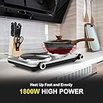 Specification: GIVENEU Electric Double Burner Hot Plate for Cooking, 1800W Portable Electric Stove, 6 Speed Adjustable Thermostats, Stainless Steel Hot Plate for Kitchen, Dorm and Camping