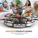 All Accessories Included – The raclette fondue combo includes one main grill plate, one fondue bowl, 8 pcs fondue forks, 8pcs mini grill pans, 8 pcs wooden spatulas and one grill stone. Get all you need for one price with one raclette fondue combo here!