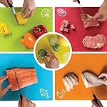 Specification: Gorilla Grip 100% BPA-Free Flexible Cutting Boards Set of 5, Durable Plastic Mats with Food Icons, Dishwasher Safe, Slip Resistant Large Mat for Meat Fish Vegetables, Kitchen Chopping Boards, Multi