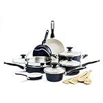 Specification: GreenPan Rio Healthy Ceramic Nonstick 16 Piece Cookware Pots and Pans Set, PFAS-Free, Dishwasher Safe, Black