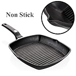 Specification: Moss & Stone Griddle Aluminum Nonstick Stove Top Square Grill Pan, Perfect for Meats Steak Fish & Vegetables,Dishwasher Safe,11 inch, Black