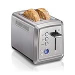 Specification: Hamilton Beach 2 Slice Toaster with Extra-Wide Slots, Bagel Setting, Toast Boost, Slide-Out Crumb Tray, Auto-Shutoff & Cancel Button, Digital with Defrost Function, Stainless Steel (22796)