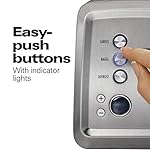 With the Hamilton Beach toaster, toasting slices of bread is only the half of it. Two extra-wide slots and a special bagel setting lets you toast The cut side of a bagel while Warming the outside. Bring frozen waffles or pancakes to a warm, golden finish with the defrost button, which thaws and then toasts the food. And for smaller items, like English muffins, a toast boost feature gives breads a high lift for easy removal. The modern Stainless Steel design features a digital display that shows the selected shade at a glance, And easy-push buttons are highlighted with indicator lights. The slide-out crumb tray makes cleaning easy.