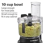 Specification: Hamilton Beach Food Processor & Vegetable Chopper for Slicing, Shredding, Mincing, and Puree, 10 Cups + Easy Clean Bowl Scraper, Black and Stainless Steel (70730)