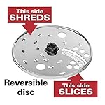 Versatility of a food processor, food chopper and vegetable chopper: Reversible stainless steel disc slices and shreds, while the stainless steel s-blade chops, mixes and purees