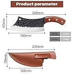 Specification: Hand Forged Meat Cleaver 6.3 Inch Kitchen Chef Knife with Leather Sheath and Gift Box Outdoor Butcher Knife Hammered Chopper Boning Knife for Home, Camping, BBQ