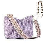 Specification: Herald Small Handmade Straw Crossbody Bag for Women, Summer Chic Woven Handbag Shoulder Purse with Chain & Guitar Strap (Purple)