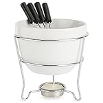 – Everything You Need – The set includes four serving forks, a ceramic fondue pot, warming stand with an attached tea light candle holder. The complete set for a fondue evening!