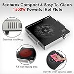 【 Durable & Easy To Clean 】 —– Easy to clean durable electric cooktop, with high quality ceramic hot plate. Just simply wipe with a clean damp cloth when the machine cools down. Because 7.1 inch heating area, heat-up in seconds by 1500W power with minimal heat loss. So the ceramic plate is hot after cooking, please don’t touch with your hand.