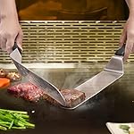 [Professional and Convenient]Long grill spatula can move large amounts of food quickly and accurately.scraper & chopper to dice food and scrape griddles clean.egg rings can shape your eggs in round or love-shaped that is more delicate.basting cover helps to reduce cooking time and splatter.turner is great for pancake flipper, fish, burgers, omelet & more.