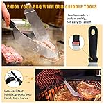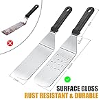 [High Quality Stainless Steel]Compared with other ordinary barbecue tools,our flat top grilling accessories kit are made of thicker stainless steel,so you can enjoy your BBQ grill,no worry about bending, breaking or rusting.And the plastic handle with hanging hole,easy to store,high heat resistant and not easy to slip.