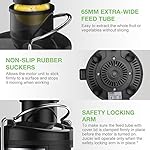 SAFETY DESIGN AND OVERHEATING PROTECTION:Ensure cover in place and the safety locking arm in the correct vertical position before using,or it won’t turn on:The non-slip rubber feet make it stable when working;The overload protection system will automatically turn off the juicer if motor overheating and you can use it again after the centrifugal juicer cool down a fews minutes later.