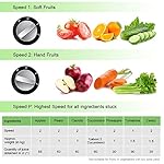 Three Speed Control: “Ⅰ” low speed for soft fruits like oranges,tomatoes and others; “Ⅱ” fast speed for hard fruits like carrot, celery, beets, kale and others; “P” fastest speed for squeezing the ingredients when the food get stuck,we recommend you to use “Ⅰ” low speed and “Ⅱ” fast speed normally