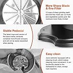【Easy to Clean】 Juicer machines adopt latest bottom support design which makes the structure more compact, the installation only in a few seconds. The juicer includes a custom-made cleaning brush that easy to clean, all the parts expcet the motor can be directly put into water or dishwashers for cleaning, which saves cleaning time.