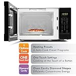 Cook your favorite foods, like leftover pizza and popcorn, confidently and never guess how much time you should heat them up at. With 6 pre-programmed Auto Cook heating presets, you’ll cook your foods quickly and evenly. The 6 presets include: pizza; frozen vegetables; beverage; popcorn; dinner plate; and potato. With the One Touch express heating settings, you can quickly start cooking for 1-6 minutes instantly. Just simply touch your desired cooking time and the microwave starts cooking. An add 30 seconds button offers a quick way to add more time to heating up foods or foods that don’t require as much heating time. Features 2 defrost options, Time and Weight, to help save you time in the kitchen. Simply select your time or weight setting and get perfectly defrosted foods. The microwave oven will beep to remind you to flip the food over so both sides are defrosted evenly.