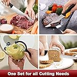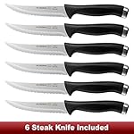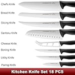 [18-Pcs Knife Sets]: Including 8” Chef’s Knife, 8” Bread Knife, 8” Slicing Knife, 7” Santoku Knife, 5.5” Boning Knife, 5.5” Cheese Knife 5” Utility Knife, 6 pieces of 4.5” Steak Knives, 3.5” Paring Knife, Bonus Peeler, Knife sharpener, and Kitchen Shears. Acoqoos Knife set meets your cutting needs in the kitchen.