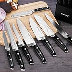 【QUALITY KNIFE SET with COMFORT GRIP】Handles is ergonomically designed for a comfortable grip, full tang for strength, and perfect balance. Triple-riveted high-impact ABS handles provide a secure, comfortable grip.