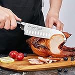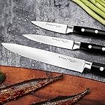 【HIGH-CARBON STAINLESS STEEL KNIFE SET】Razor-sharp blades are made of advanced HRC55 stainless steel for top efficiency and durability. Precision-ground blades taper to create an extremely sharp, fine cutting edge. Full tangs and extra-wide forged bolsters ensure maximum safety, stability and control.