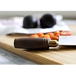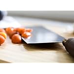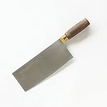 For Asian cuisine, a big, well-balanced cleaver like this one serves nearly all kitchen cutlery needs. The stainless-steel blade, 8 by 3-1/4 inches, slices thinly and evenly, giving a cook control, speed, and uniformity in cutting tasks while providing enough weight for tougher jobs. The round walnut handle, with a brass fitting between it and the blade, fit snugly in the hand. –Fred Brack