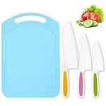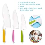 Specification: LEEFE 3 Pieces Kids Knife Set for Cooking, with Cutting Board, Safe Lettuce and Salad Knives, Kids Cooking Utensils in 3 Sizes & Colors, Serrated Edges, Plastic Safe Kitchen Knife