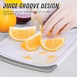 【Juice Groove & Handle】 On side of the plastic cutting boards are designed with juice grooves to catch the juicy and sticky liquids in case they run on your counter, keeping your countertop clean and tidy all the time. The handle design also comes in handy when you need to lift the boards the counter.