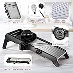 Mandoline Food Slicer, Adjustable Stainless Steel with Waffle Fry Cutter Crinkle Cut Potato Chip Vegetable Onion