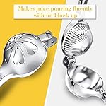 ★【DURABLE & DELICATE DESIGN】- The metal lime squeezer is made of high quality Zinc alloy with chrome-plating and polishing processing. It is corrosion resistant and doesn’t react with fruits, nor does it breed bacteria. Never worry about health and original flavor of the juice. The unique petal design at the bottom of the bowl makes your life more refined.