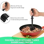 【Eeay to Clean】-Our meat masher utensil adopts anti-dirt design, non-stick surfaces, just rinse with water then you can get the ground hamburger utensiltool clean, dishwasher safe. Ground beef masher could be a gift for your family or friends to make cooking much easier and wonderful.