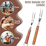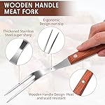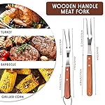 Meat forks set: you will receive 2 pieces of meat forks, suitable for kitchen cooking and barbecue use, wooden handle is comfortable to hold, stainless steel fork head is sturdy and durable, not easily damaged, enough quantity and reliable materials to facilitate your different use needs