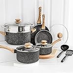 Non Toxic & Cadmium Free – Our pots and pans set is 100% PFOA, PTFE, lead and cadmium free, ideal for healthy cooking. Choose these nonstick stone cookware set for greener and safer cooking!