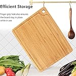 Built-in juice groove surrounds the carving board to safely retain the juices from meat, fruits, or vegetables. Finger grip hole ensures cutting board stays in place while in use, and makes it easy to hang for efficient storage