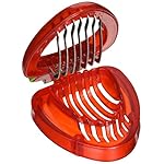 Dress up the simplest dessert with slices of fresh strawberry. This red strawberry shaped slicer has seven stainless steel blades and will effortlessly slice strawberries into perfectly even slices. Great for pies, cakes, salads and garnishes. Cutting area on slicer: 2-1/4 x 1-3/4. Not dishwasher safe.