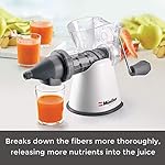 SUPERIOR VALUE -100% High quality, new and improved design, each part has been designed for safe, ease of use, less waste, and maximum juice UNMATCHED QUALITY AND SAFETY – We use only the highest quality materials, all materials that come in contact with the food are safe, with the most advanced technology, to ensure complete well-being. VERSATILE – All of the parts are detachable, saving lots of space. fits easily into any kitchen drawer, dishwasher safe, easy to clean. simple, lightweight, durable, quiet and eco-friendly. MULTIFUNCTIONAL – Well-suited to juicing fruits and vegetables, grapes, watermelons, pears, apples, pineapples, oranges, lemons, corns, celeries, cucumbers, carrots, etc. Suitable for travel, camping, or for any time you want juice on the go without the need for electricity.