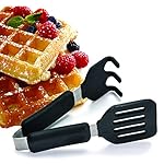 With the function of a turner and a fork, this is an excellent tool for lifting waffles from a hot waffle iron. Silicone prongs fit neatly into pockets to secure waffles without tearing.